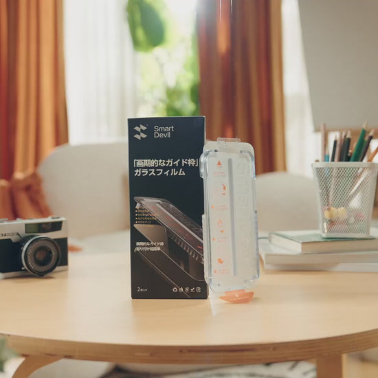 - 【最新なデザインのガイド枠】2ステップだけで簡単に貼り付け!ガイド枠をスマホに被せて、ホコリ除去シートを引っ張ると貼り付け完了です!